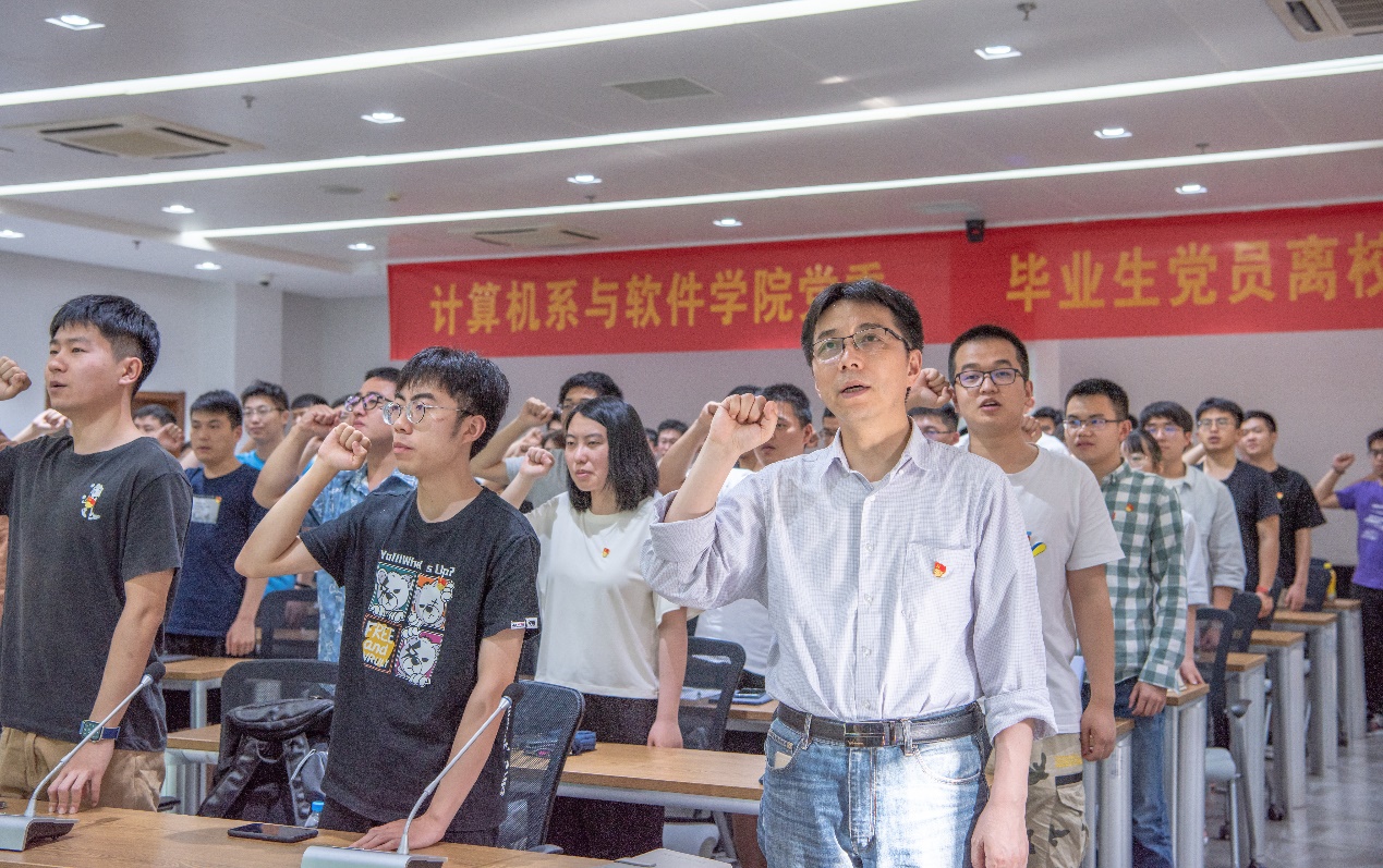 随后,武书记借用习近平总书记的话向计算机系所有毕业生党员提出三点期望:一、要有远大理想,砥砺奋斗。广大青年既是追梦者,也是圆梦人。追梦需要激情和理想,圆梦需要奋斗和奉献。广大青年应该在奋斗中释放青春激情;二、要勤奋学习,知行合一。梦想从学习开始,事业靠本领成就。广大青年要自觉加强学习,不断增强本领,既多读有字之书,也多读无字之书,注重学习人生经验和社会知识。同时要坚持知行合一,在实践中学真知、悟真谛;三、不忘初心,勇担大任。一代人有一代人的长征,一代人有一代人的担当。新时代中国青年应该积极拥抱新时代,奋进新时代,让青春在为祖国、为人民、为民族、为人类的奉献中焕发出更加绚丽的光彩。此外,武书记也希望在座的所有同学在今后的学习工作中,铭记“立大志,明大德,成大才,担大任”,努力践行“今日我以南大为荣,明日南大以我为荣”,发挥先锋模范作用,展现南大风采。