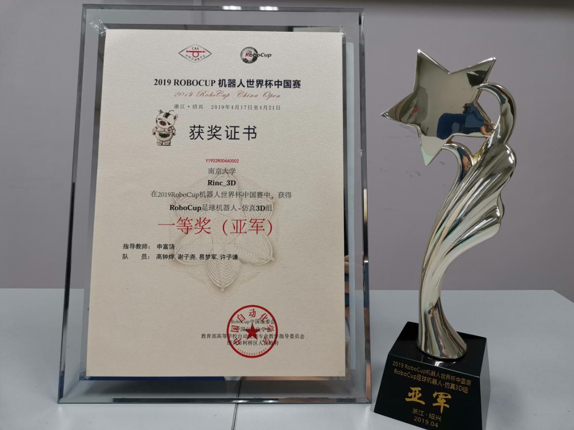 2019年4月18日-21日,2019 RoboCup机器人世界杯中国赛在浙江绍兴柯桥中国轻纺城国际会展中心举行。经过三天的激烈角逐,我系机器人智能与神经计算研究组(//adultxsweb.com/rinc/index.html)的“Rinc_3D”团队(成员:高钟烨,谢子尧,易梦军,许子谦指导教师:申富饶)荣获仿真3D组一等奖(亚军)。