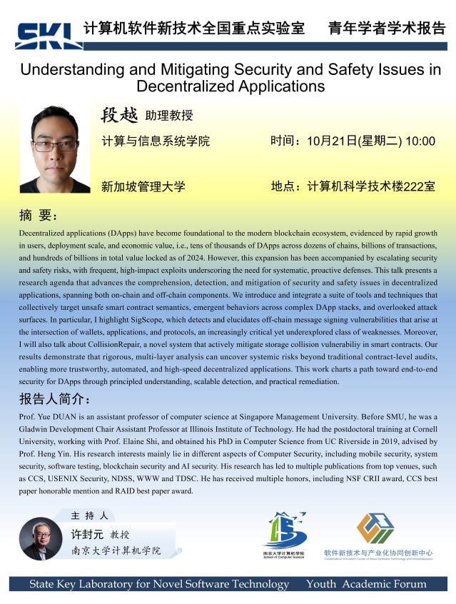 2025年10月21日“软件新技术讲坛”学术报告 - 段越 助理教授