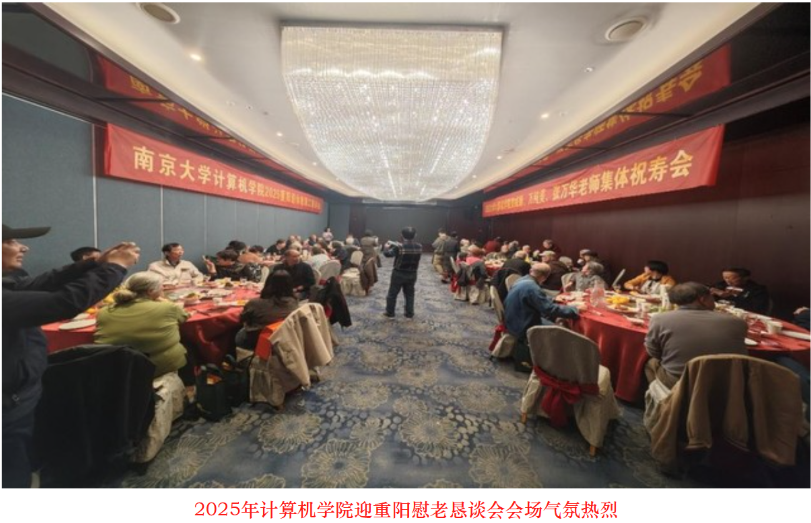 传承敬老之风,共叙桑榆之情。举办敬老慰老活动,是成人小说 多年来坚守的优良传统。10月28日,重阳节前夕,恰逢金陵满城丹桂飘香的斑斓时节,今年的慰老恳谈会在龙江阳光广场老广东酒家温馨启幕。活动现场暖意融融,50余位退休老教师欢聚一堂。其中既有原学科带头人,也有贺威顺、张万华等 80 岁及以上的高龄老同志,大家共话往昔、畅谈今朝。