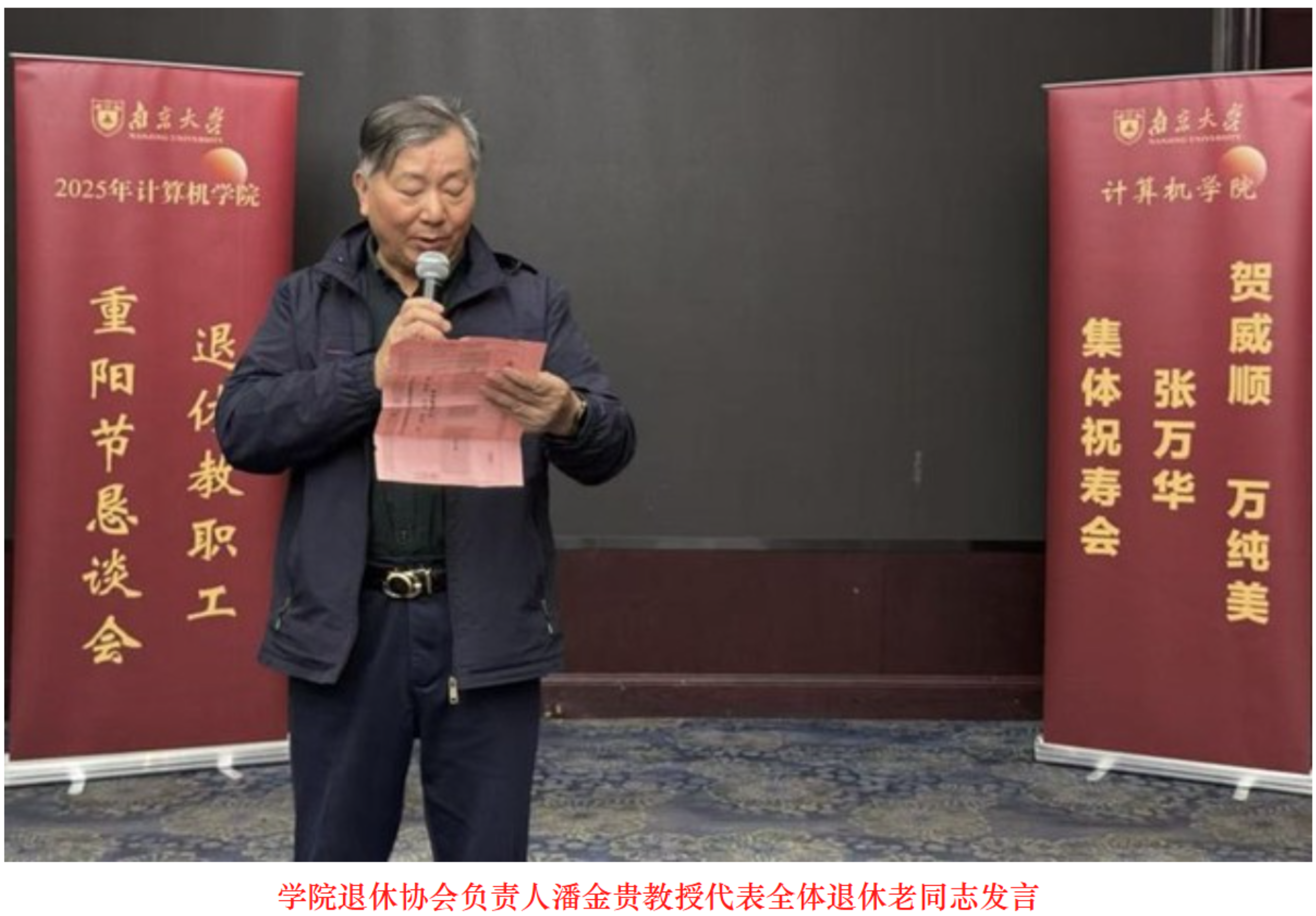 活动尾声,学院退休协会负责人潘金贵教授代表全体退休老同志发言。他在发言中表达了对院领导的感谢,感谢院领导始终心系老同志的生活与需求,感谢学院对老年工作的高度重视与大力支持。