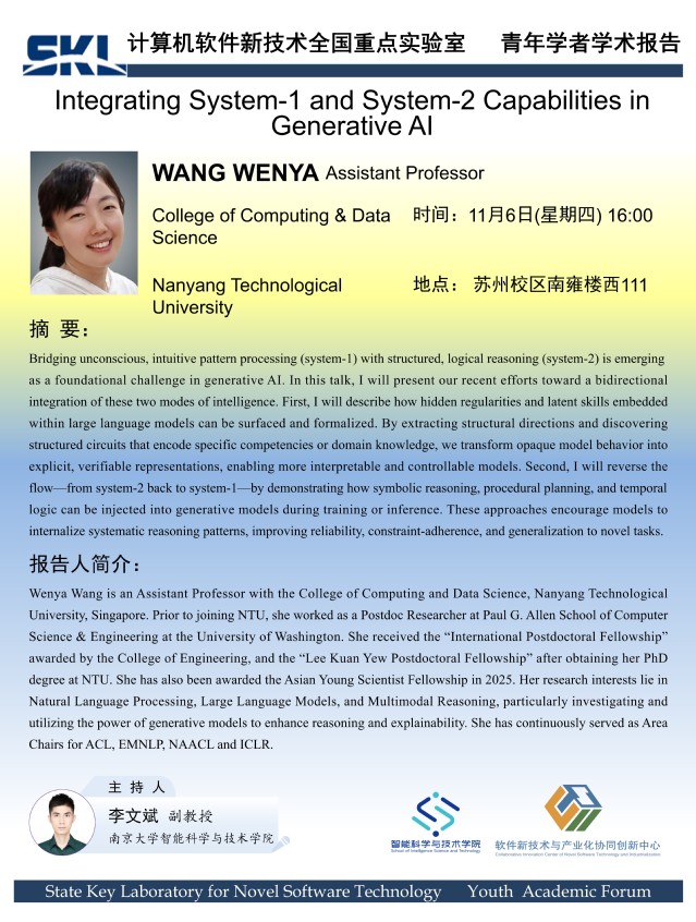 2025年11月6日“软件新技术讲坛” 学术报告 - WANG WENYA 助理教授