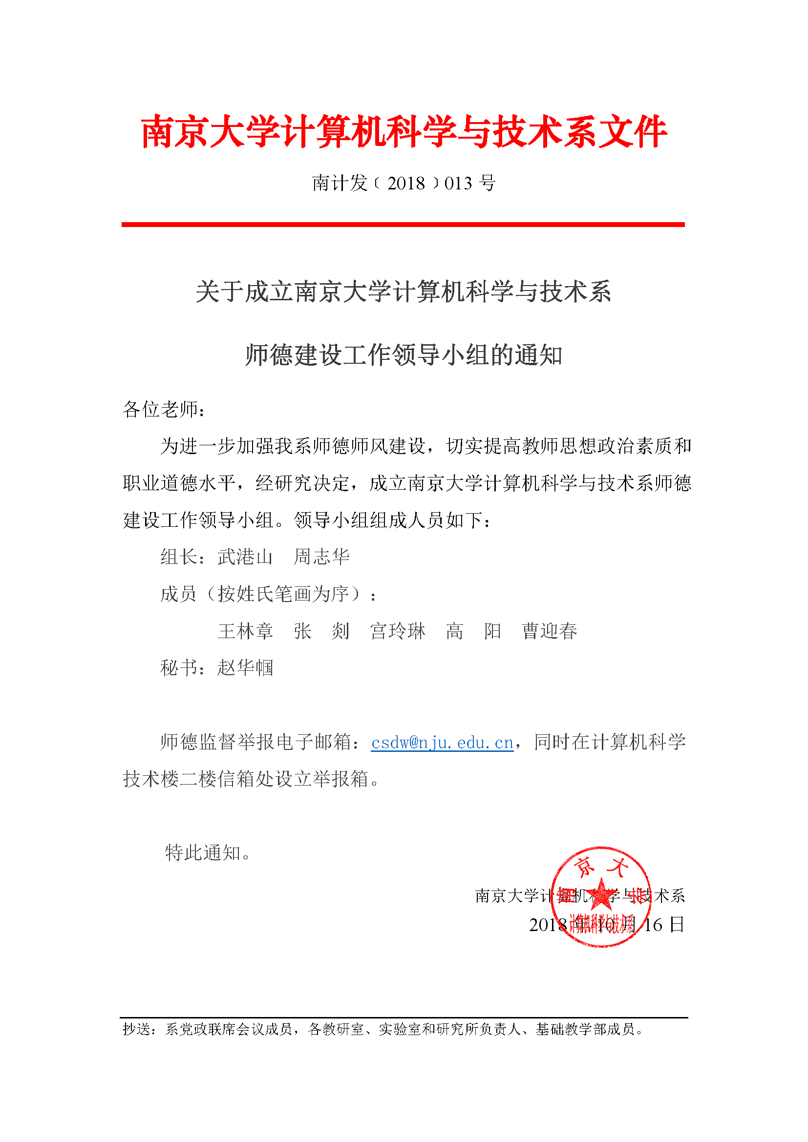 关于成立 成人小说 计算机科学与技术系 师德建设工作领导小组的通知
