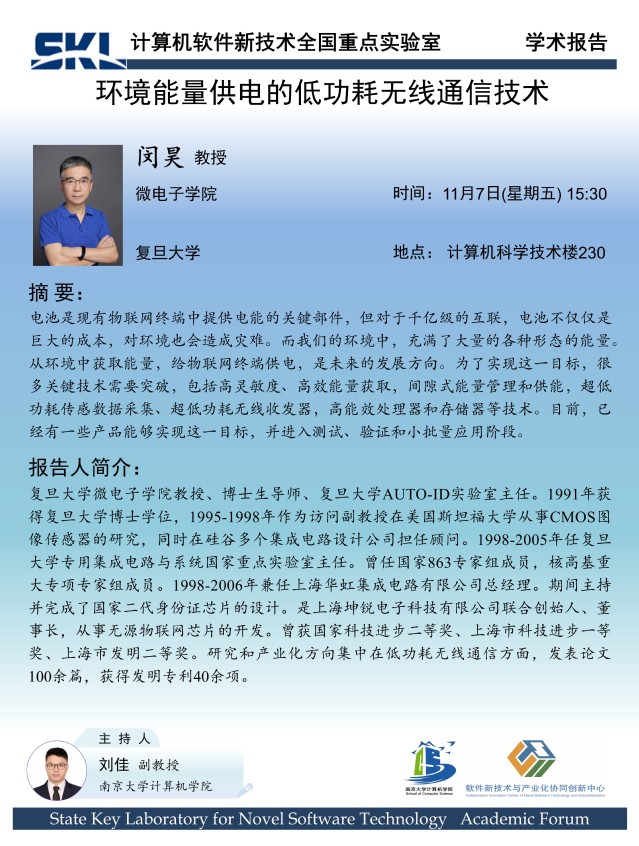 2025年11月7日“软件新技术讲坛”学术报告 - 闵昊 教授
