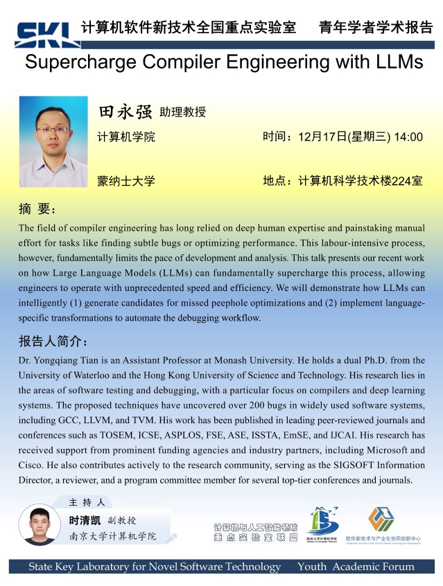 2025年12月17日“软件新技术讲坛”学术报告 - 田永强 助理教授