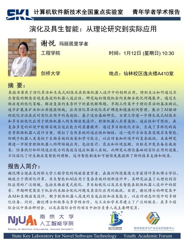 2025年1月12日 “软件新技术讲坛” 学术报告 - 谢悦 玛丽居里学者