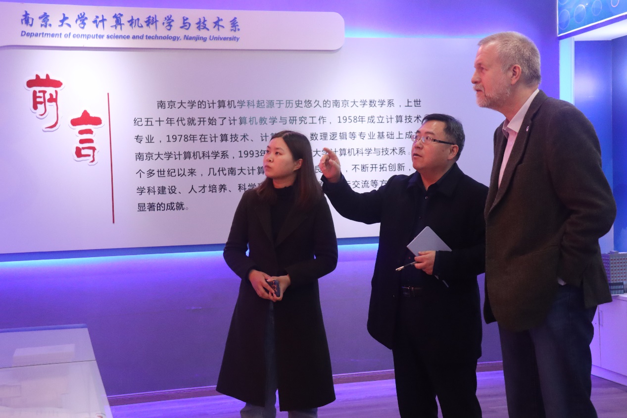 在参观计算机系大楼之际,Espen Aarseth教授详细了解了计算机系的发展历程以及重要科研成果。教授对我校计算机系的蓬勃发展和所取得的科研成果表示赞赏。
