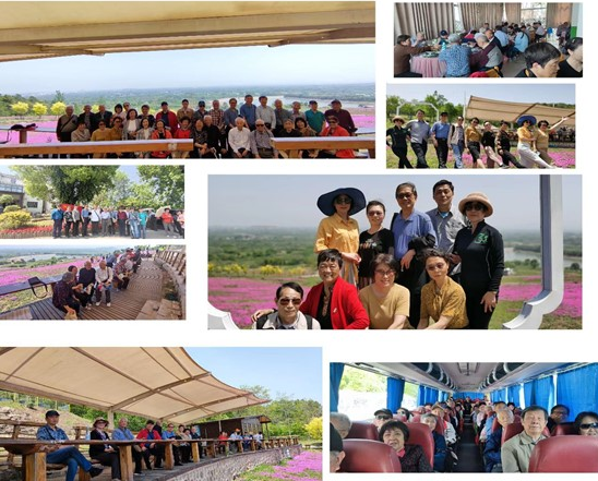 亲近自然 拥抱春天。阳春四月,就像川剧变脸,昨日还是春光明媚,阳光和煦,今天却变得艳阳高照,尤如一夜从春季变到夏季。气温虽高但不失春意盎然,鸟语花香,正宜踏青赏花,感受自然,亲近自然的好时节。在计算机系党委和行政的关心支持下,系退休教师党支部和退协分会组织退休老党员老同志和春天来个约会的主题春游活动。417日上午9:00,滿载计算机系50位老同志的大巴经过一小时左右的行车抵达第一站“句容天王山芝樱小镇