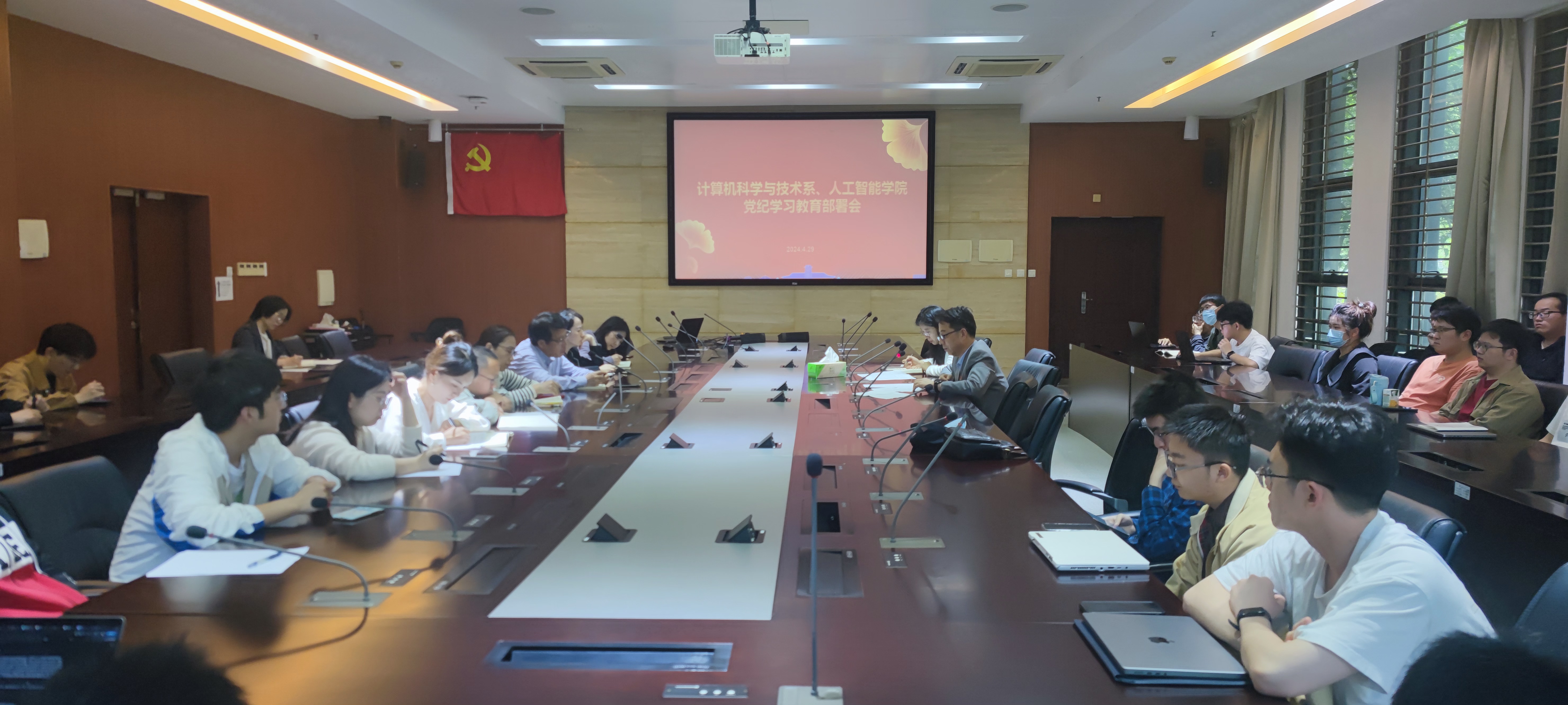 4月24日下午,计算机系与软件学院党委会(扩大)会议暨党纪学习教育工作动员部署会在系楼511会议室召开,党委委员及中心组成员参加会议。党委书记武港山主持会议,传达了学习习近平总书记关于党纪学习教育的重要讲话和重要指示精神,并集中学习修订后的《中国共产党纪律处分条例》。武书记指出,要按照学校党委要求,认真研究部署学院党委党纪学习教育工作,要求院党委委员带头学习、做出表率;要深化警示教育,让党员、干部清醒认识违纪的沉重代价,塑造风清气正的廉洁校园环境;要认真组织2024年度中层以上领导班子民主生活会。会议审议通过《中共成人小说 计算机系与软件学院委员会关于开展党纪学习教育的实施方案》并确定党纪学习教育工作专班组成人员。
