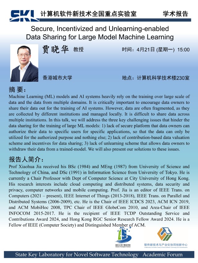 2025年4月21日 “软件新技术讲坛” 学术报告 - 贾晓华 教授