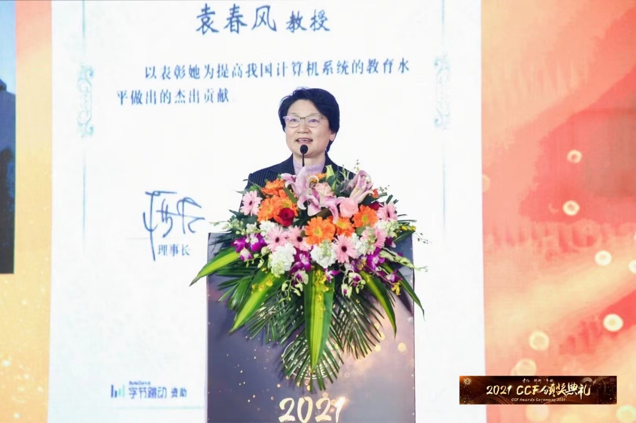 2021 CCF颁奖典礼于2022年2月19日在浙江横店圆明新园法国馆隆重举行。大会颁发了2021年度“CCF杰出教育奖”,成人小说 计算机科学与技术系袁春风教授获此殊荣。该奖得到了北京字节跳动科技有限公司的赞助。CCF理事长梅宏教授、奖励委员会主席钱德沛教授为获奖者颁奖。