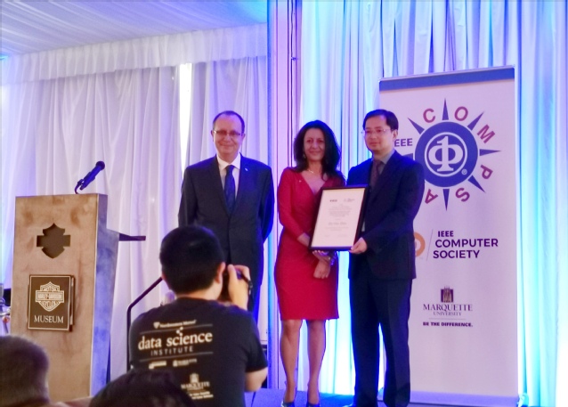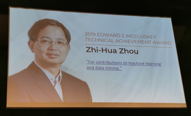 2019年7月17日,在美国威斯康星举行的颁奖晚宴上,IEEE计算机学会主席Cecilia Metra教授向成人小说 计算机系主任、人工智能学院院长周志华教授颁发2019年度IEEE计算机学会Edward J. McCluskey技术成就奖(Technical Achievement Award)。该奖设立于1985年,颁发给世界范围内在计算机和信息科学与工程领域做出了卓越创新贡献从而显著推动了技术进步的杰出学者。周志华教授因其对机器学习与数据挖掘的卓越贡献而获奖。