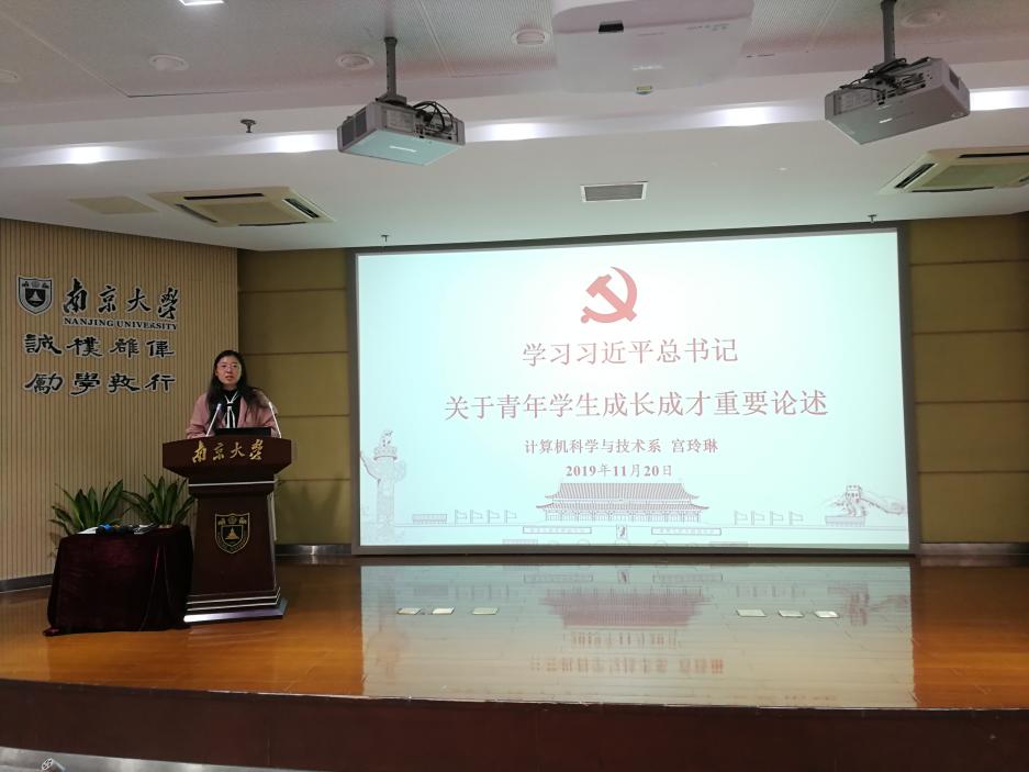 深入推进“不忘初心、牢记使命”主题教育活动,强化党员同学的使命与担当意识,20191120下午,计算机系本科生党支部特邀系党委书记宫玲琳老师,“学习习近平总书记关于青年学生成长成才重要论述”为主题,为全体支部成员讲授专题党课。宫书记从八个方面出发,一一解读习近平总书记对当代青年人的寄语