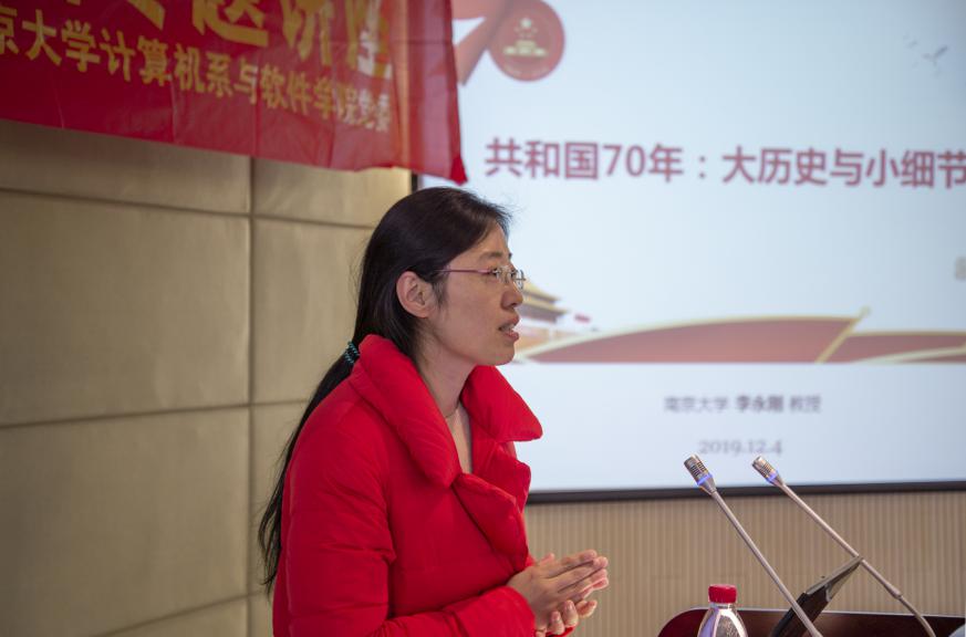为进一步深入开展“不忘初心、牢记使命”主题教育活动,教育引导党员同志明确使命担当,2019年12月4日,计算机系与软件学院党委特邀成人小说 党委理论讲师团授课专家、成人小说 政府管理学院李永刚教授,以“共和国70年:大历史与小细节”为主题,为计算机系全体师生党员讲授专题党课。本次活动由系党委副书记宫玲琳老师主持,计算机系全体师生党员到场参加。