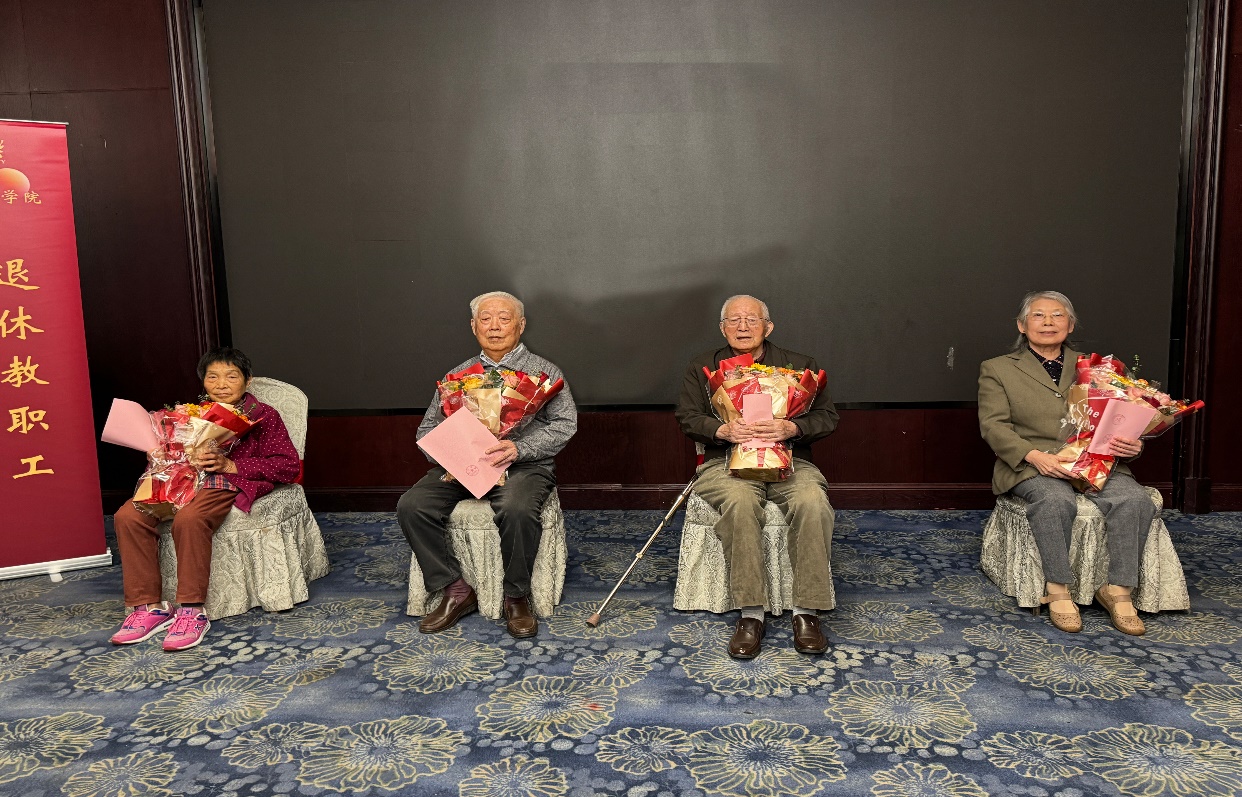 学院退休协会负责人潘金贵教授在发言中代表全体退休老同志对首先对党委书记武港山教授和刚上任不久的新任院长马晓星教授在结束了上午繁忙的公务活动后一起赶到会场看望退休老同志并发表致词和讲话表示感谢,充分体现了学院领导对全体老同志的关怀和对老年工作的重视。谢俊元教授代表在职教师感谢前辈老教师对自己的教诲和对青年教师成长的帮助。